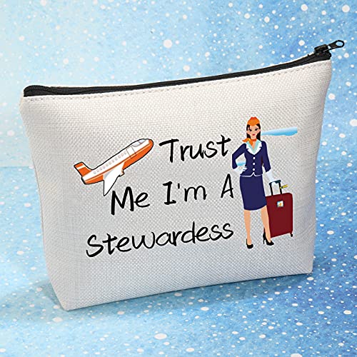 KEYCHIN Bolsa de maquillaje para azafata de aire Regalos para asistente de vuelo Azafata Regalos de aviación Confía en mí Soy una azafata Bolsa de cosméticos con cremallera de viaje
