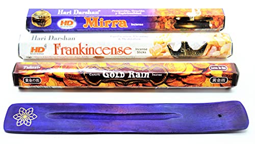 varitas de Incienso de 3 Reyes, Oro, Incienso, Mirra (3 Kings Gold Frankincense Myrrh ) Incienso Joss 60 Varillas Navidad Jesús, Fragancia casera Joss Sticks con cenicero