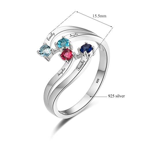 Yanday Anillo de Mujer Anillo con Nombre Personalizado Grabado 4 Nombres y Anillos Familiares con Piedra de Nacimiento Anillo con Nombre(Plata 20,25)