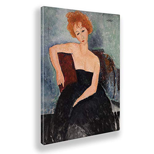 Giallobus - Pinturas - Amedeo Modigliani - Mujer con Cabello Rojo y Vestido Negro - Lienzo - 50x70 - Listo para Colgar - Cuadros Modernos para el hogar