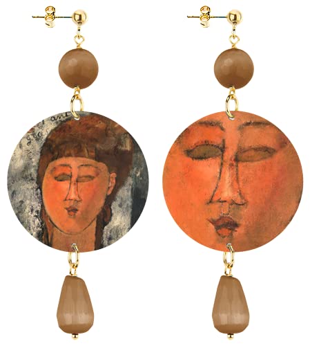 IN Lebole Colección The Circle Enfant Gras de Amedeo Modigliani - Pendientes de mujer de latón y piedra marrón