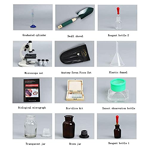 - [QUÉ INCLUYE]: cabezal de visualización monocular con LED; viene con un juego de accesorios de varias piezas; Requiere 2 pilas AA (no incluidas) +20 tipos de rebanadas + 40 piezas de suministros para libros de texto de biología