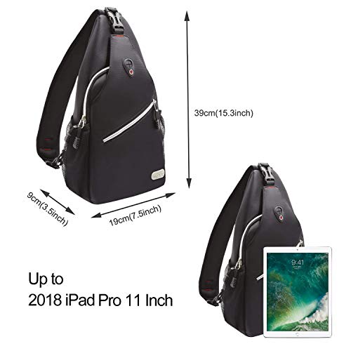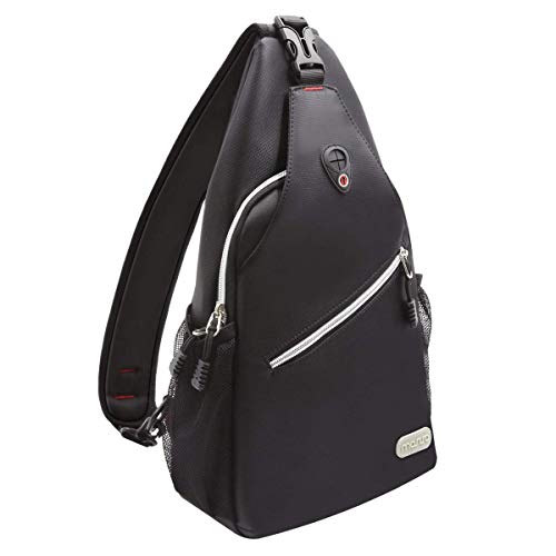 MOSISO Bolso de Honda, Poliéster Repelente de Agua Duradero Pecho Hombro Desbalanceada Gimnasia Fanny Ligero Crossbody Saco Satchel al Aire Libre Excursión Mochila Daypack, Negro