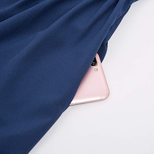 Belle Poque Vestido de cóctel una línea Vestido de Encaje Elegante Vestido Retro Vintage Vestido de Noche de los años 50 Azul Marino BP927-2_L