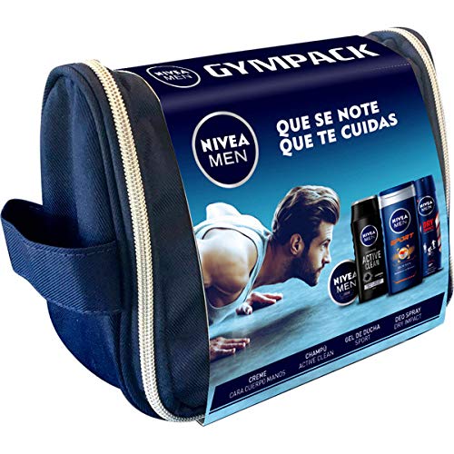 NIVEA MEN Neceser Gimnasio Gympack, neceser con gel de ducha (1 x 250 ml), champú reparador (1 x 250 ml), desodorante roll on (1 x 50 ml) y crema NIVEA MEN (1 x 75 ml)