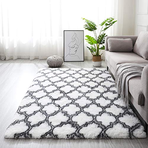 Alfombras Salon Grandes Alfombra Rectángulo Shaggy para Salón habitación de los Niños Dormitorio Modernas Alfombra Pelo Adecuado para Salón Dormitorio(Blanco, 120*160cm)