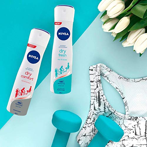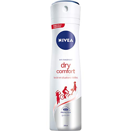 NIVEA Dry Comfort (1 x 200 ml), desodorante antitranspirante con protección 48 horas, spray desodorante de cuidado femenino testado en la vida real
