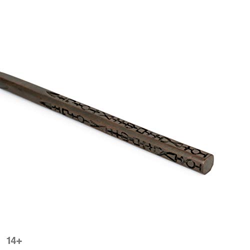 - TAMAÑO DE LA VARA - Una auténtica recreación de la varita de Harry Potter. Viene en una caja de varita etiquetada con el personaje y con una etiqueta metálica con el nombre. Esta réplica exacta 1:1 mide aproximadamente 29 cm de longitud