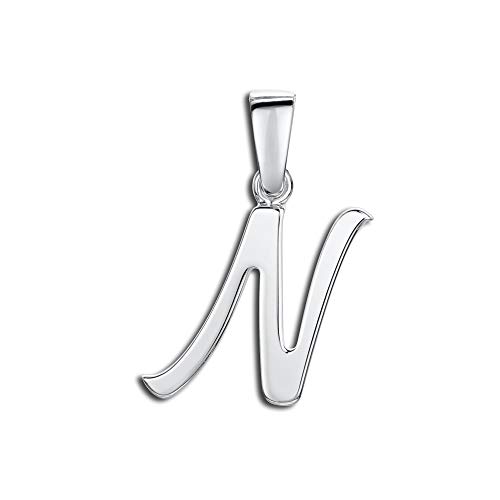 Amberta Joyas - Colgante en Forma de Inicial en Plata de Ley 925 - Colgante Clásico para Mujer de Moda - Letra N