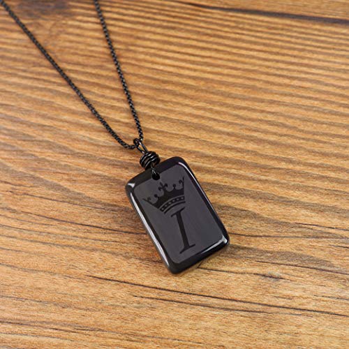 COAI Colgante Targa de Obsdiana con Inicial del Nombre Letra del Alfabeto Grabada I