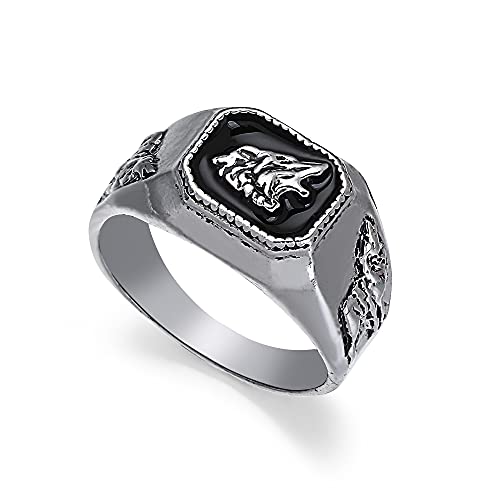 - Nombre: anillo de cabeza de lobo tallada para hombre