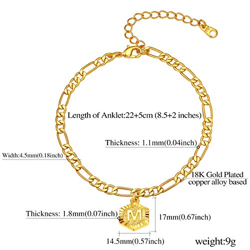 FindChic Pulsera Pie Tobillo Mujer Medalla Letra M Inicial de Nombre Tobillera Grabada de Cadenas Italianas Oro Enchapado