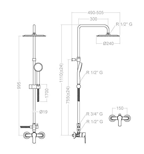 Ramon Soler Titanium - Conjunto ducha monomando con rociador redondo ABS y teleducha, 3 funciones