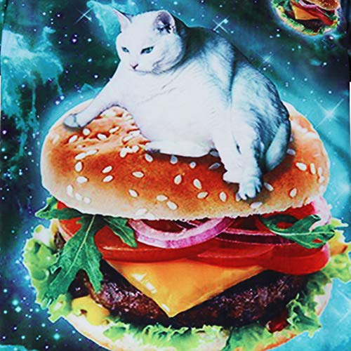 Goodstoworld Divertido Galaxy Hamburguesa Gato Camiseta Impresa Camisas de Verano Funky Cuello Redondo Camiseta tee Tops para Mujer para Hombre XL