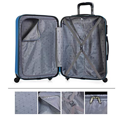 ITACA - Maleta de Viaje Rígida 4 Ruedas Trolley 65 cm Mediana de ABS. Práctica Cómoda y Ligera. Calidad Marca y Confianza. Estudiantes y Profesionales. 71160, Color Azul-Antracita