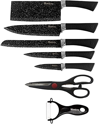 MAXELLPOWER Set DE 5 Cuchillos Tijeras PELADOR Copper Stone Juego ESMALTADOS Acero Garantia (Black Stone Edition)