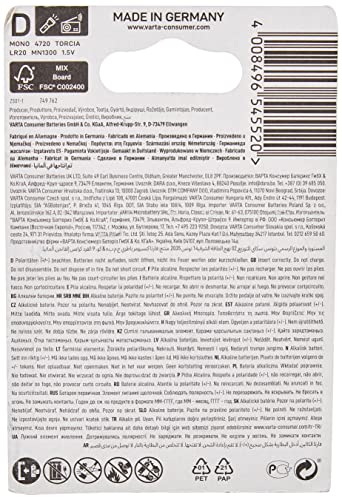 Varta Pila Longlife Max Power D Mono LR20 (paquete de 2 unidades), pilas alcalinas - «Made in Germany» - Adecuado para juguetes y aparatos de uso cotidiano