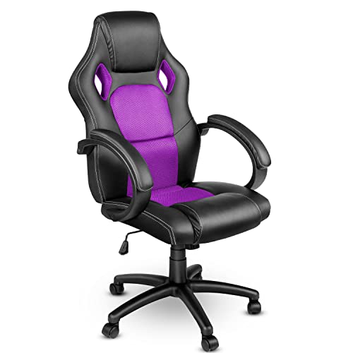 TRESKO Silla giratoria de oficina Sillón de escritorio Racing disponible en 14 colores, bicolor, silla Gaming ergonómica, cilindro neumático certificado por SGS (Negro/Púrpura)