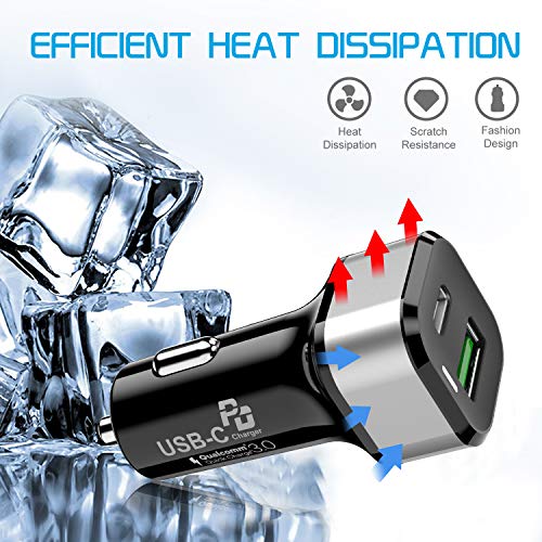 - ⚡️【1 Cargador Coche para Todos】Con el C a C cable en el paquete, este cargador coche usb c cargará en alta velocidad sus teléfonos y tabletas iPhone y Android. Con un cable micro usb o usb c, su android teléfono alcanza a 80% de carga tras sólo 35 minutos. Si usted querría conseguir carga rápida para los modelos de apple, tales como iPhone 11/11 Pro/11 Pro/8/8P, iPhoneX/XR/XS/XS MAX, iPad Pro 10.5, iPad Air3 10.5”, iPad mini5 7.9”, es mejor usar un C a Lightning cable de asin B07Y1KD77V.