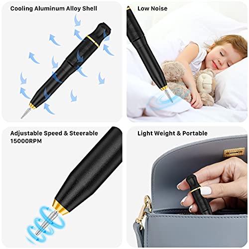 - 【Velocidad ajustable】 3000-15000Rmp, ajuste de velocidad de 6 velocidades, cambio de velocidad simple a través del botón en el cable USB. Ajuste la velocidad según sus necesidades.