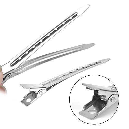 - 12 pinzas de pico de pato: las pinzas de pelo de pico de pato están hechas de aluminio anodizado con una superficie lisa. Son resistentes y no se oxidan fácilmente, son duraderos y reutilizables, se pueden usar durante mucho tiempo.