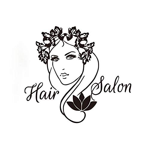 Peluquería Logo Vinilo Etiqueta de La Pared Dama Con Flor Tatuajes de Pared Decoración para el Hogar Sala de estar Tatuajes de Pared 55x50 cm