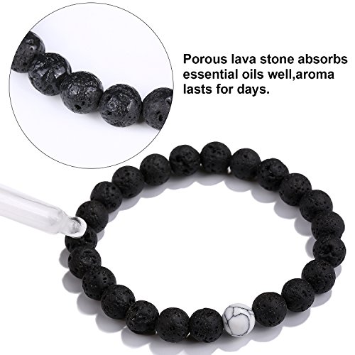 BBTO 4 Piezas de Pulsera de Howlite Brazalete de Difusor de Piedra Lava Juego de Pulsera de Aromaterapia para Aceite Esencial