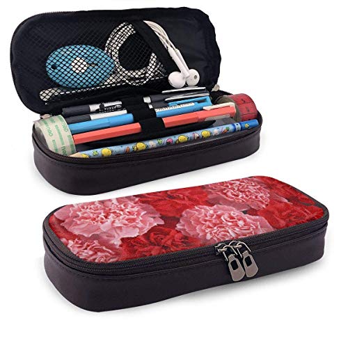 huatongxin Estuche para lápices Pink Peony Estuche para lápices de cuero de gran capacidad Estuche para lápices de papelería multifunción Estuche para maquillaje