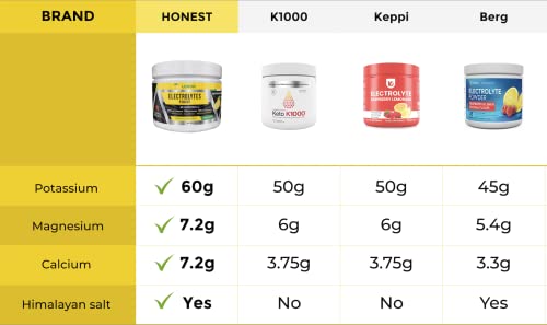 - Calidad y valor: si está buscando electrolitos de alta potencia, no busque más, ¡los ha encontrado! Honest Electrolytes incluye 60 porciones de potasio de alta calidad (1000 mg por porción), magnesio (120 mg), calcio (120 mg) y sal roja del Himalaya (200 mg). Estos electrolitos son perfectos para la sales minerales ciclismo, no contienen azúcar y superan a otros suplementos de fatiga con el equilibrio mineral correcto para recuperador muscular ciclismo
