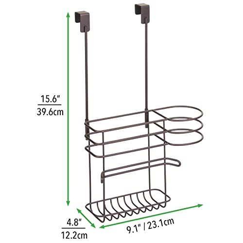 mDesign Soporte para secador - Cesta colgante, sin taladrar - Organizador para baño de productos de peluqueria – Elegante soporte para plancha, rizador o secador de pelo, en acero inoxidable