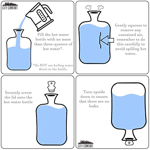 - Seguro de usar: la botella de agua caliente está hecha de caucho natural y se ha fabricado según la norma de seguridad BS1970: 2012. Estas botellas de agua caliente con tapa pueden contener hasta 1 litro de agua y están hechas de caucho 100% natural.