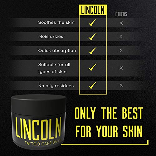 - ✅ FÁCIL Y RÁPIDO DE USAR: El bálsamo para tatuajes de LINCOLN ayuda a mantener los colores del tatuaje vivos, mientras que la fórmula natural ayuda a la piel a recuperar su flexibilidad. Simplemente aplica una pequeña porción en tus manos, frótalo entre ellas hasta que se sienta suave y masajea gentilmente sobre tu tatuaje