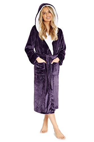 CityComfort Vestido de Lujo de Las señoras Traje súper Suave con Forro de Piel Albornoz Felpa Albornoz para Mujeres (S, dunkellila)
