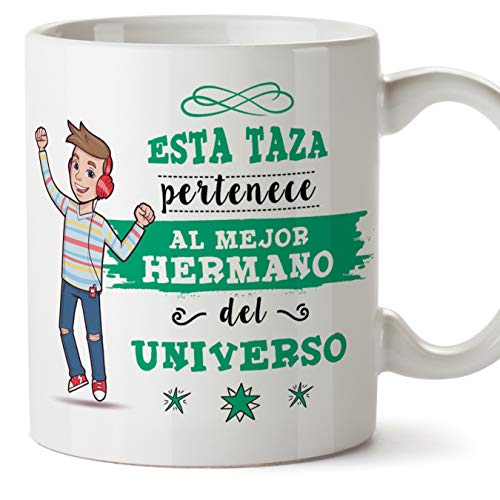MUGFFINS Taza Hermano - Esta Taza Pertenece al Mejor Hermano del Universo - Taza Desayuno/Idea Regalo Original/Cumpleaños de Hermanitos. Cerámica 350 mL