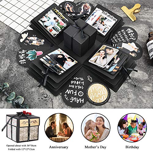 - 🎁Handgemacht: La caja de regalo DIY es un álbum de recortes hecho a mano, de cálido corazón, tiene muchas ranuras para fotos, puedes poner la foto en la tira extraíble o simplemente montarla en el marco. Llena la caja de explosión con tu paciencia, puedes decorarla según tus propias ideas.