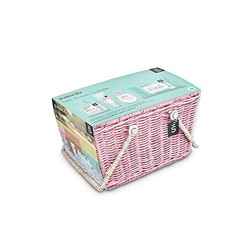 SUAVINEX Canastilla Cosmética De Bebé Con Cesta De Mimbre. Incluye: Baby Cologne 100ml, Gel Champú Syndet 300ml, Pomada Intensiva Pañal 75ml, Toallitas Dermohidratantes 25 Uds. color Rosa