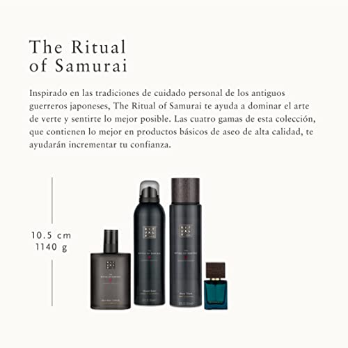 - Completa el Ritual: Este maravilloso set de baño y ducha de tamaño pequeño contiene espuma de ducha, gel de ducha para cabello y cuerpo, spray antitranspirante y crema de afeitar. Descubre The Ritual of Samurai al completo