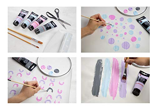 Marabu 1201000000088 - Juego de pinturas acrílicas pastel, 5 x 100 ml en blanco, lavanda, azul claro, rosa y gris oscuro, cremosa, mate sedoso a base de agua, secado rápido, se puede mezclar y cubrir.