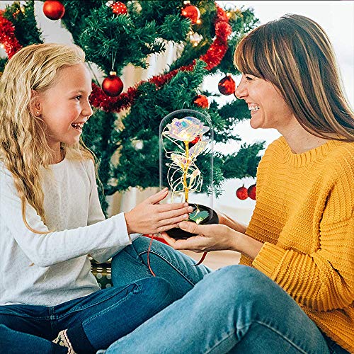 - 🌹Kit Galaxy Rose: Incluye rosa colorida, tiras de luces LED, pétalos caídos, cúpula de vidrio, base de plástico. Cuando la cúpula de cristal brillante está cubierta de rosas, es como una obra de arte agradable a la vista. Ideal no solo para obsequios a amantes y amigos, sino también como una hermosa decoración para salón o dormitorio o hogar. Nuestra rosa de cristal crea una sensación agradable y reconfortante en la casa cuando pasa tiempo con su familia.