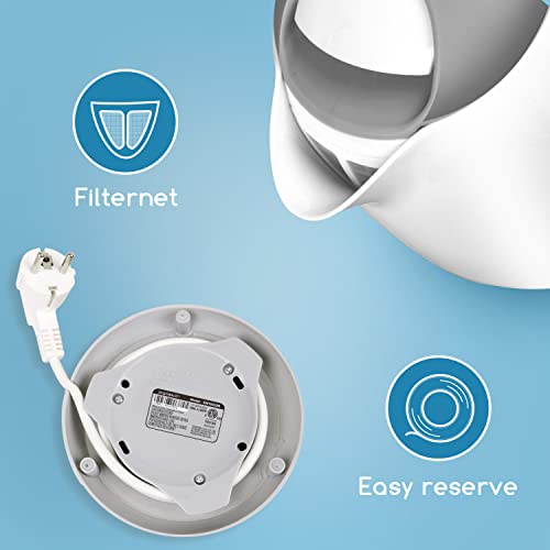 Aigostar Juliet 30Hio - Hervidor de Agua Compacto de 1 Litro, 1100W, Libre de Bpa. Base 360º, Filtro Desmontable, Sistema de Protección Contra la EbullicióN en Seco. Color Gris y Blanco. Diseño Exclusivo.