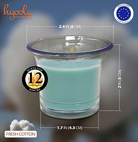 Hyoola Velas Votivas con Perfume - Velas Aromáticas en Vaso Transparente - Velas Perfumadas con Algodón Fresco - Verde Claro - 12 Horas de Combustión - Pack de 4 - Hechas en Europa