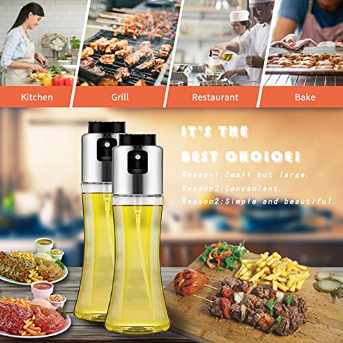 2 Piezas Pulverizador de Aceite, Dispensador de pulverizador de Aceite, Rociador de Aceite, rociador de vinagre, Premium Acero Inoxidable Botella de Vidrio 180 ML para cocinar/Ensalada/Hornear Pan/BBQ
