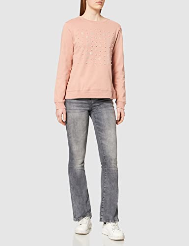 Sudadera de manga larga caída, con cuello redondo, con letras con relieve y perlas en la parte delantera.