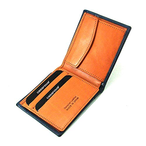 Cartera Hombre, Hecho a Mano en España, Marca Casanova, Hecha en Piel de Vacuno, Ref. 15195 Azul