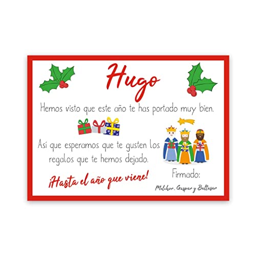 Nota de Reyes Magos, personalizada con el nombre. Melchor, Gaspar y Baltasar.