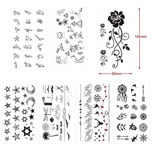 - Contiene 6 hojas de pegatinas temporales de papel para tatuajes que están impresas con tinta no tóxica, las hojas miden 8.2" x 6" pulgadas, ¡tus amigos pensarán que te has hecho un nuevo tatuaje! gran diversión para fiestas, eventos especiales también para probar cómo sería un tatuaje real.