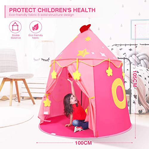 Peradix Tienda Campaña para Niños, Castillo de la Princesa, Carpa con Juego de Pitcheo, Regalo para Niños,Carpa para niños portátil Pop Up,Tienda Rosa Plegable para Interior y Exterior (Rosado)