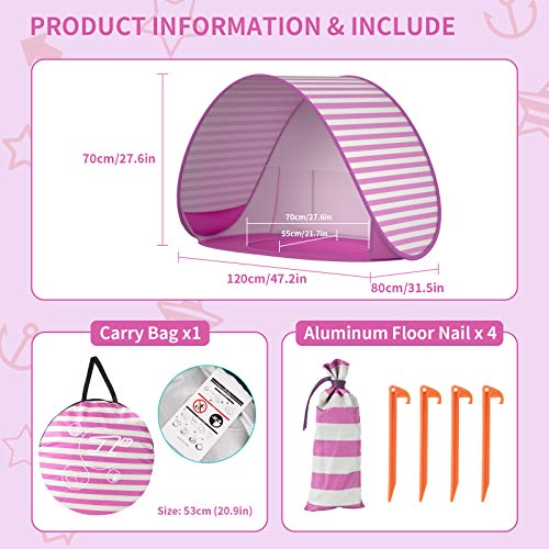 SAEYON Tienda Playa Bebe, Pop up Tienda de Bebé con Mini Piscina para Infantil Carpa, Protección Solar Anti UV 50+ Refugio Playa del Bebé, Piscina Separable Beach Carpa para Niños, Rayas Rosas