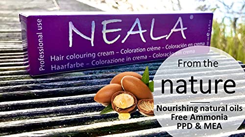 - Tinte profesional Neala libre de Amoniaco, libre de PPDs y libre de MEA. Gracias a sus componentes más naturales ofrece un mayor cuidado y respeto al cabello, ayudando a su cuidado, brillo natural y equilibrio del PH del cabello.