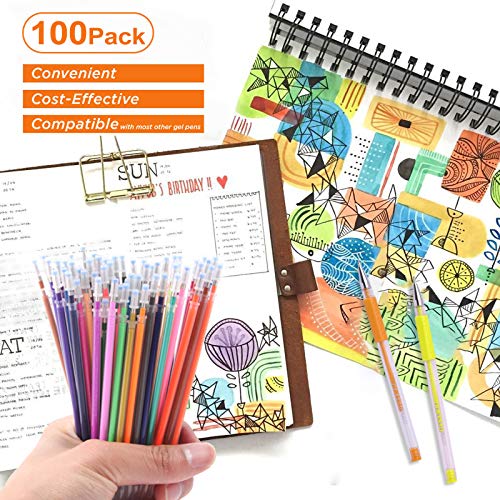ZSCM 100 colores recargas de tinta para bolígrafos de gel, recargas de bolígrafos de tinta de gel de neón con purpurina, cartuchos de repuesto para juego de bolígrafos de gel con purpurina